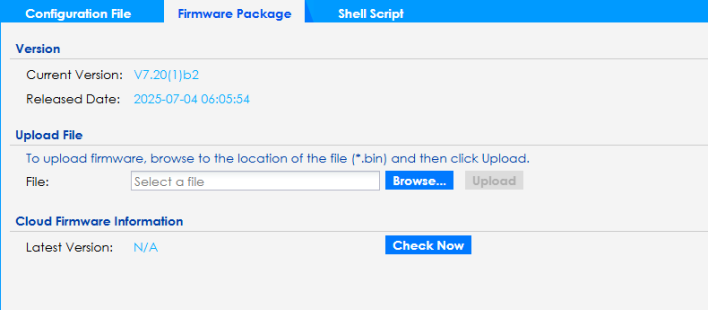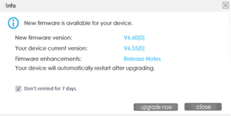 upgrade now | Click this to start upgrading your Zyxel Device to the new firmware version. |