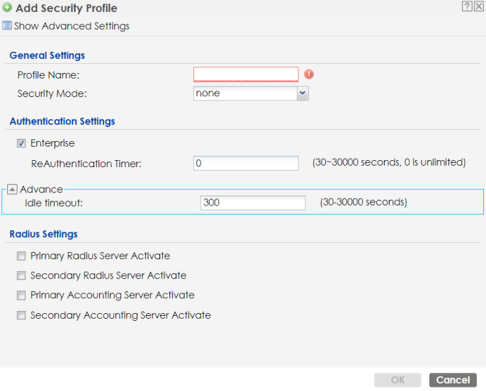 ReAuthentication Timer | Enter the interval (in seconds) between authentication requests. Enter a 0 for unlimited time. |