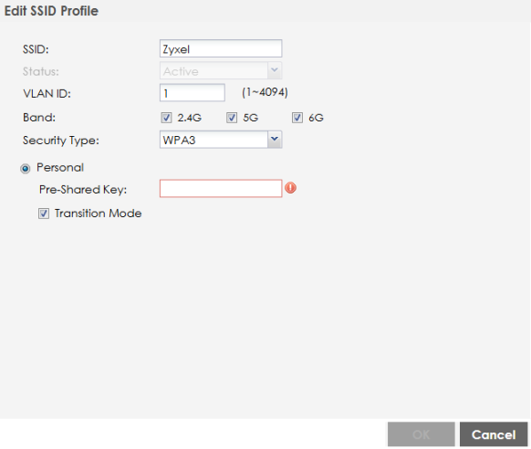 • VLAN ID: Enter a VLAN ID for the Zyxel Device to use to tag traffic originating from this SSID.
