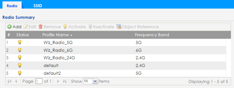 Object Reference | Click this to view which other objects are linked to the selected radio profile. |
