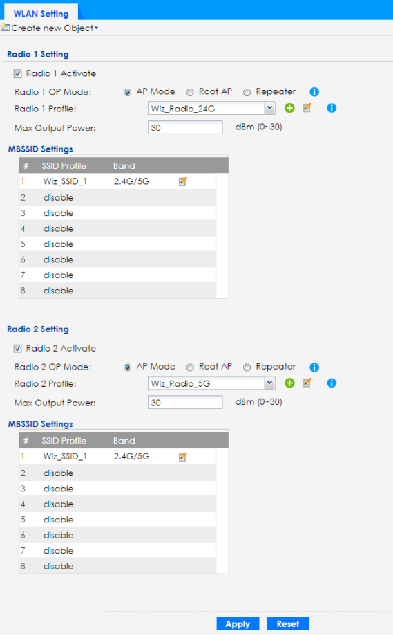 Radio 2 Profile | This displays if the Zyxel Device has a second radio. Select the radio profile the radio uses. |
