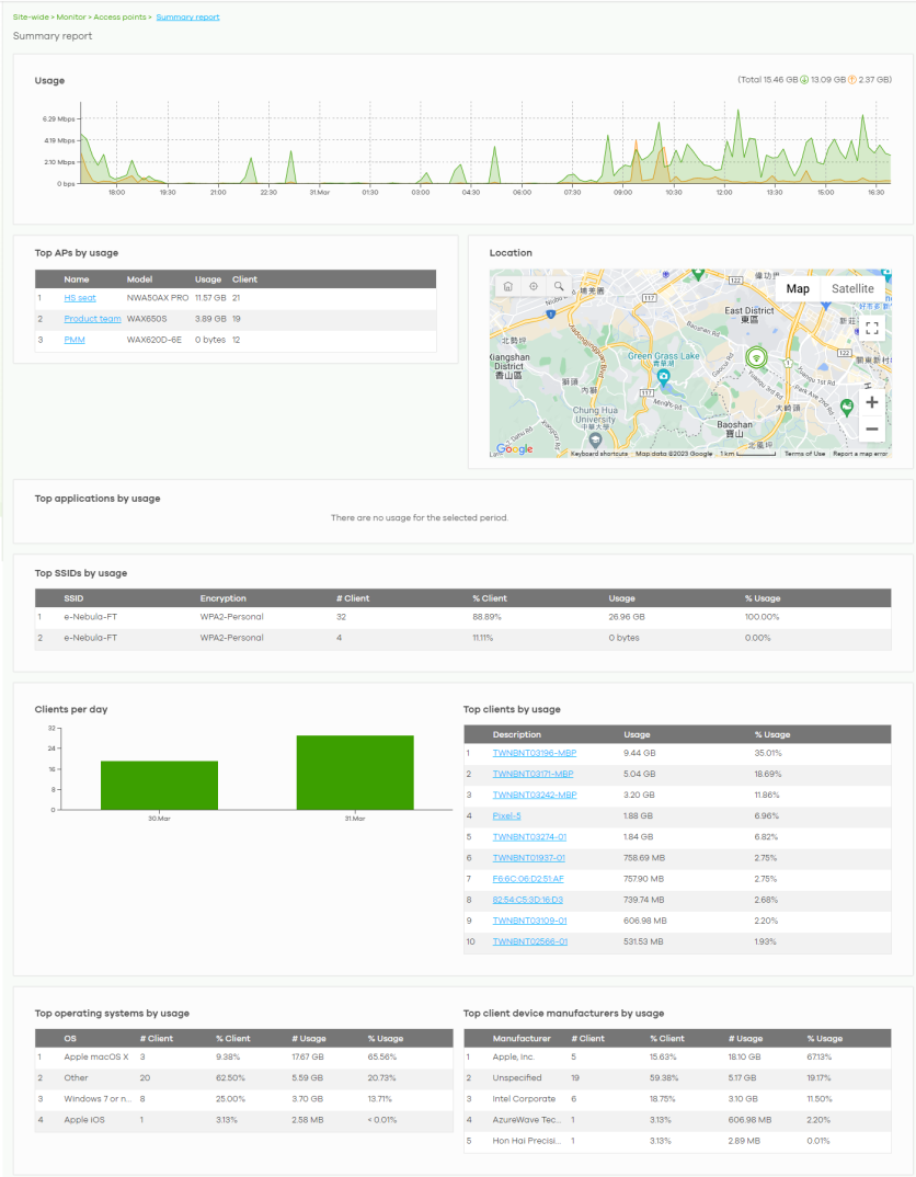 Location This shows the location of the Nebula access points on the map. | |