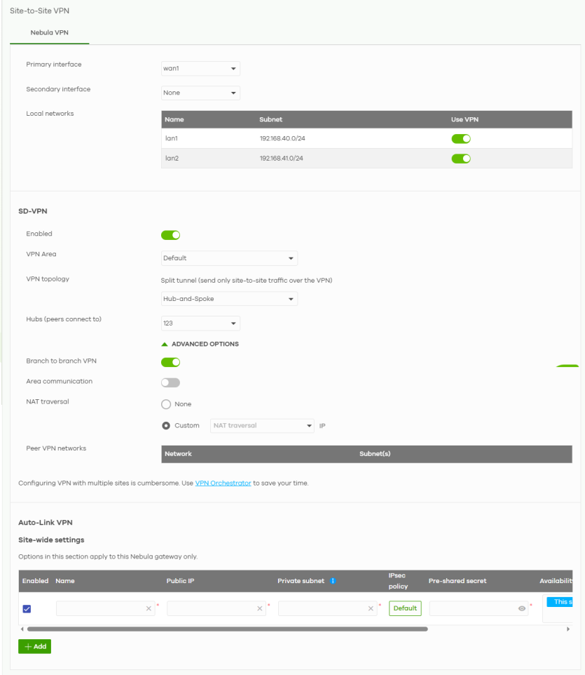 Proxy ARP | Proxy ARP (RFC 1027) allows the Nebula Device to answer external interface ARP requests on behalf of a device on its internal interface. Click Add new to add the IP address or IP range of devices that the interface will answer proxy ARP requests for. |