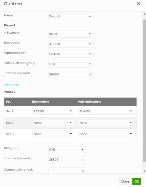 Preset | Select Default to use the pre-defined settings, or select Custom to configure your own settings. |