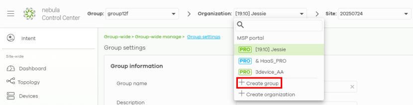 A group is a collection of two or more organizations. Groups allow you to view and manage multiple organizations, and create VPN links between groups in the organization.