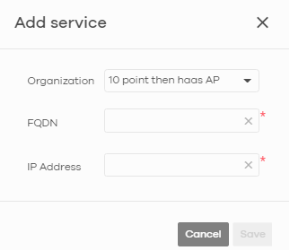 4 Click + Org-to-Org Service, and add a server’s fully qualified domain name (FQDN) and IP address.