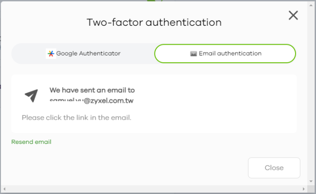 If you select Email authentication, an email is sent to your Zyxel Account’s email address. Click the Enable 2FA link in the email.