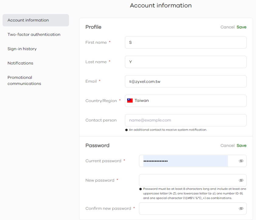 Current Password | Enter the current password you use to log in to the Zyxel Account. |