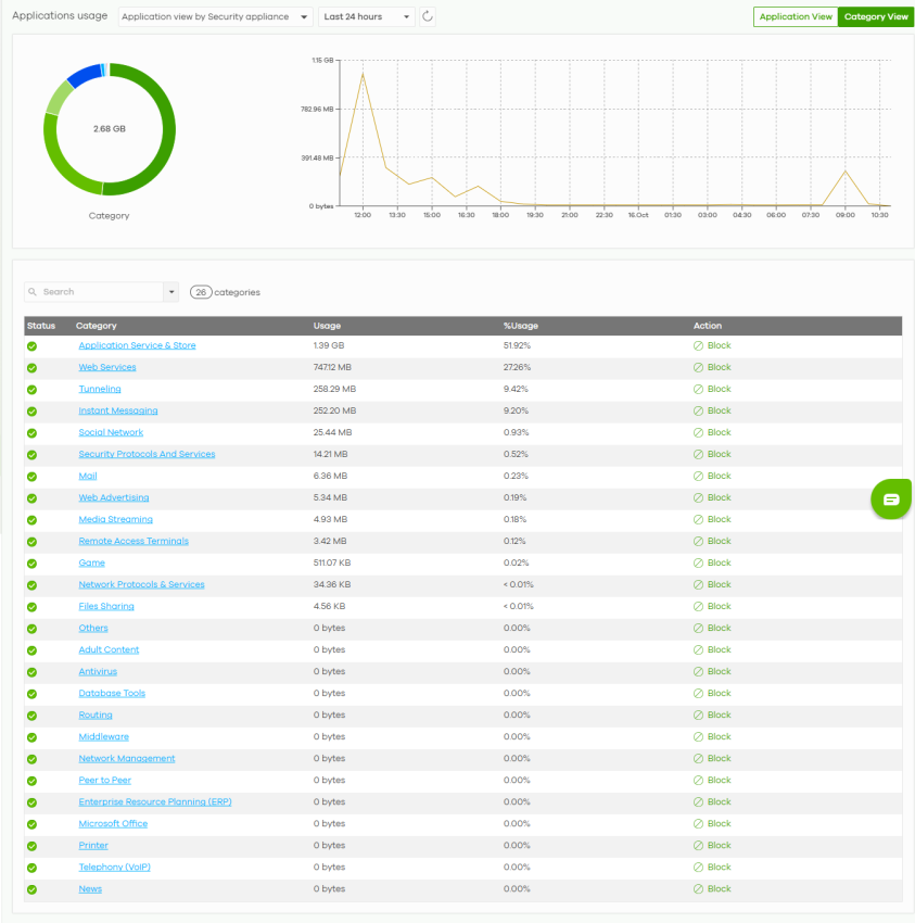 Status | This shows whether the application or category is blocked or allowed within the current site. |