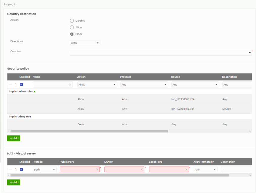 Client | Select the client, or enter a single IP address (LAN interface) or IPv4 CIDR (for example, 192.168.1.1/24) to which this rule applies. Then press Enter or click + Add new. Or, select Any to apply the rule to all clients. |