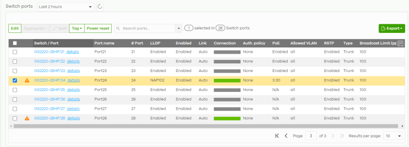 Flow control | This shows if flow control is enabled on this port. See Site-wide > Configure > Switches > Switch ports: Edit for more information. |