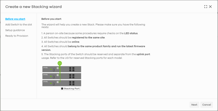 Switch / Port | This shows the Nebula Device name and port number. If the port is added to a trunk group, this also shows whether it is configured as a static member of the trunk group (Static) or configured to join the trunk group through LACP (LACP). If the port is connected to an uplink gateway, it shows Uplink. If the port is a stacking port, it shows the stacking name, slot ID and port number. Click details to display the port details screen. See Switch Details. |