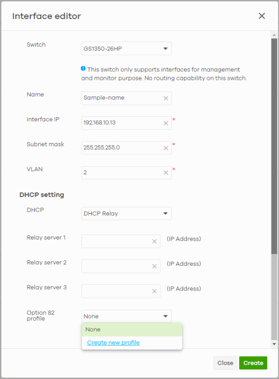 Sub-option | Select the MAC option to have the Nebula Device add its MAC address information to the client DHCP requests that it relays to a DHCP server. Otherwise, leave this field blank. |