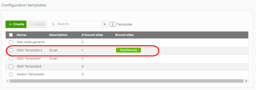 This section shows you how to use a configuration template to manage sites for your organization. Create a site and then bind a site to a template. You may enable the local override function if you want to configure some specific settings directly in a site after a site is bound to a template.
