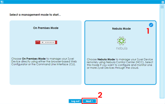 • Select the Nebula management mode.