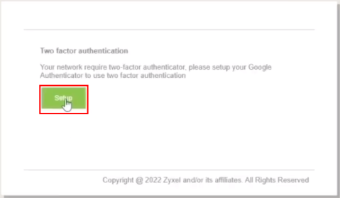1 On the Two factor authentication screen, click Setup.