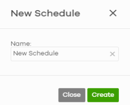 + Add | Click this button to create a new schedule. A window pops up asking you to enter a descriptive name for the schedule for identification purposes. ![]() |