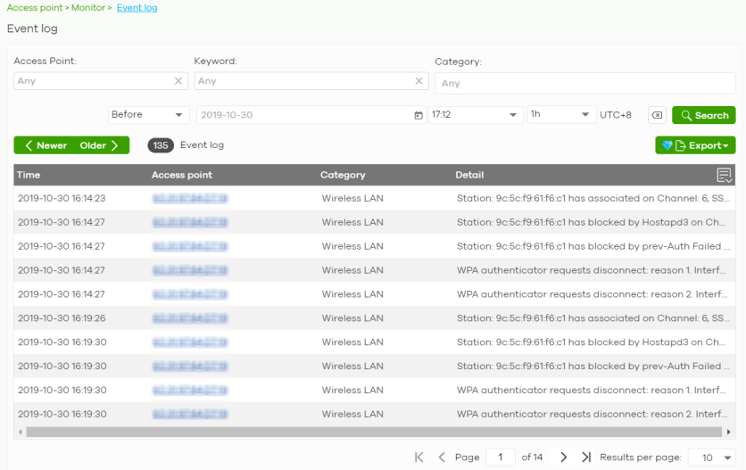 Alert | This shows how many times the Nebula Device is in a poor state of wireless health. The NCC generates a log when the Nebula Device is in poor wireless health. You can view the log messages in the Site-wide > Monitor > Access points > Event log screen. |