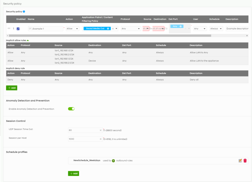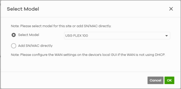 Add SN/MAC directly | Add a Security Firewall to the site, by entering its serial number or MAC address. |