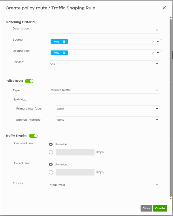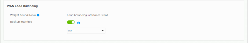 Upstream bandwidth | Enter the upstream bandwidth of the WAN connection. This value is used for WAN load balancing by algorithms such as weighed round robin. |