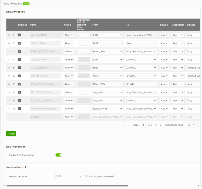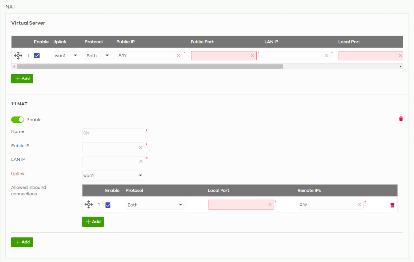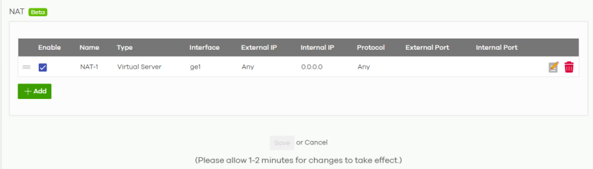 Proxy ARP | Proxy ARP (RFC 1027) allows the Nebula Device to answer external interface ARP requests on behalf of a device on its internal interface. Click Add new to add the IP address or IP range of devices that the interface will answer proxy ARP requests for. |
