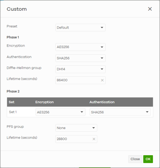 Preset | Select Default to use the pre-defined settings, or select Custom to configure your own settings. |
