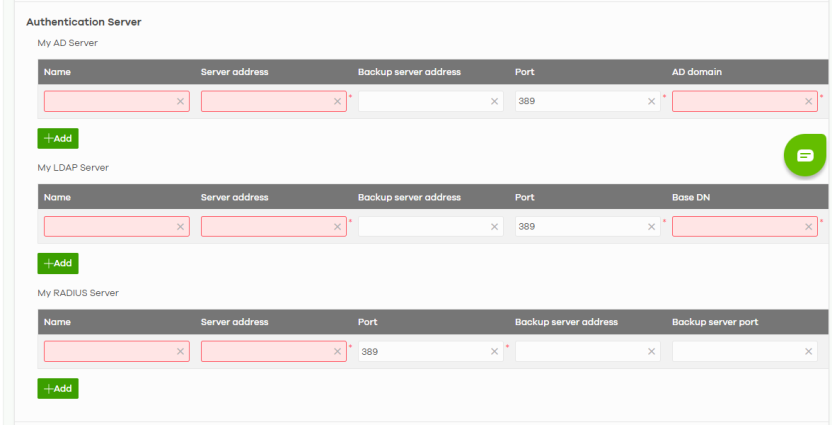 Authentication Server | Select the Name of the Authentication Server you added in My AD Server, My LDAP Server, or My RADIUS Server. |