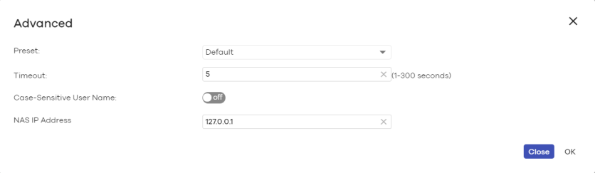 NAS IP Address | Enter the IP address of the NAS (Network Access Server). |