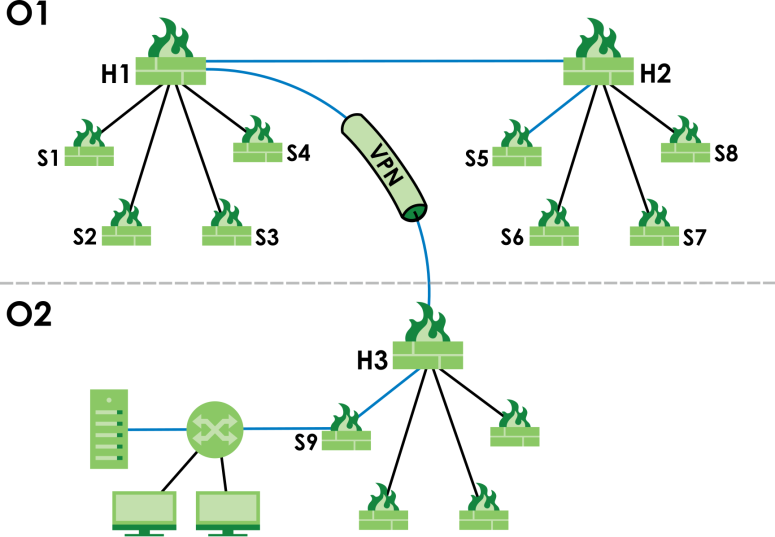 Org-to-Org VPN allows Nebula Devices in different organizations in a group to access each other’s services, such as a website, database, or ERP server, through VPN tunnels.