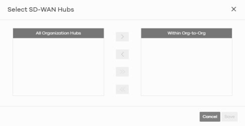 Within Org-to-Org | This box lists all hub sites inside the org-to-org network. It shows the name of the hub followed by the Organization it belongs to in parentheses. |