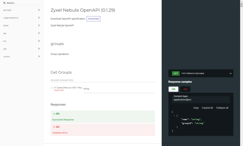 Group-wide manage | Inventory | Use this menu to view Nebula Devices belonging to organizations. You may also export the list of Nebula Devices found to your computer. |