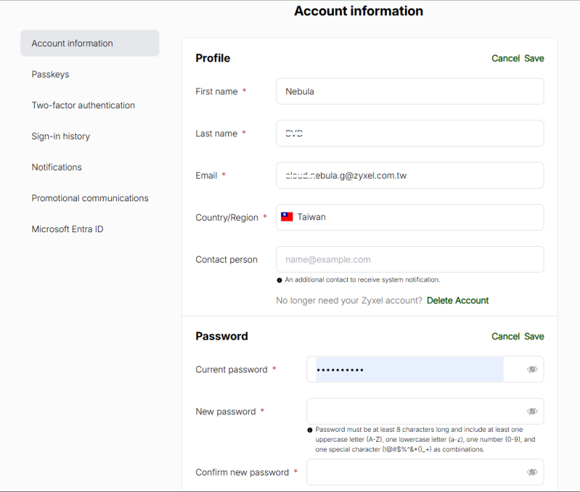 Current Password | Enter the current password you use to log in to the Zyxel Account. |