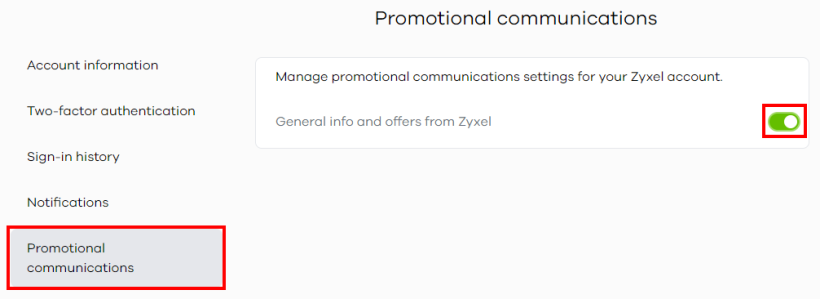 Login successful notification | A notification is sent by email for each successful login to your Zyxel Account. |