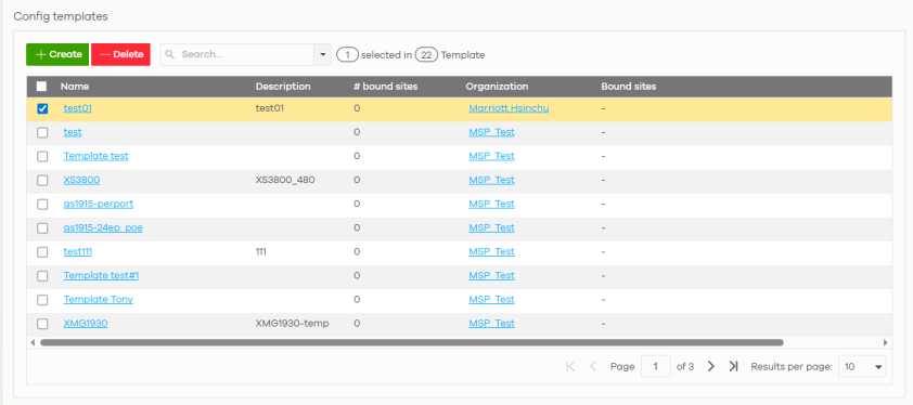 MSP > MSP cross-org manage > Config templates