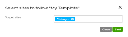 Bind additional site | Click this button to bind more sites to the template. A window displays. Select the name of the sites in the Target sites field and click Bind. |