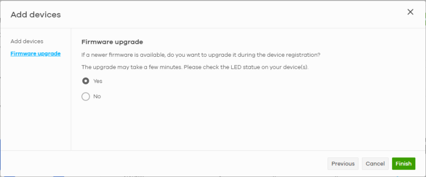 Model | This shows the model number of the Nebula Device being added. |