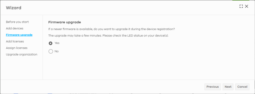 Next | Click this to add the Nebula Devices to the organization. |