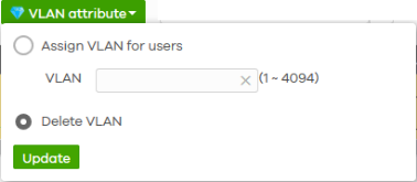 VLAN attribute | Select one or more than one user account and click this button to assign the users to a specific VLAN ID, or clear the VLAN ID. Then click Update. ![]() |