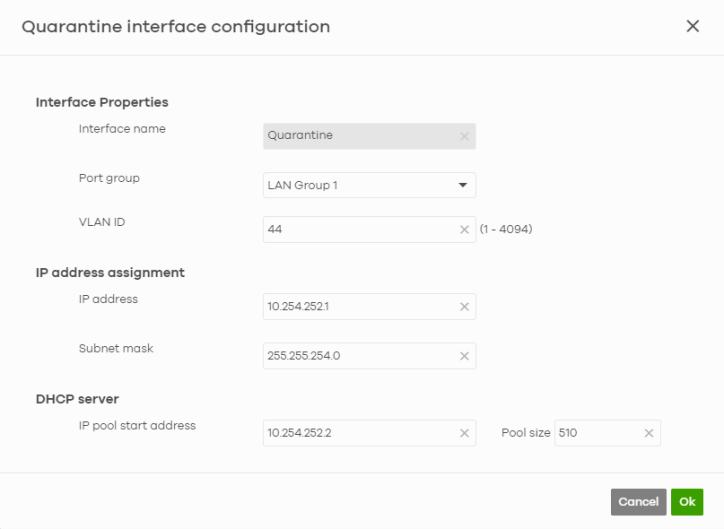 Interface Name | This field is read-only. The default name is “Quarantine”. |