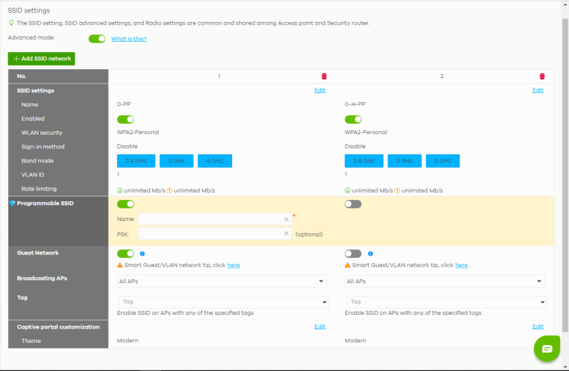 Band mode | Select to have the SSID use either 2.4 GHz band, 5 GHz band, or 6 GHz band only. |