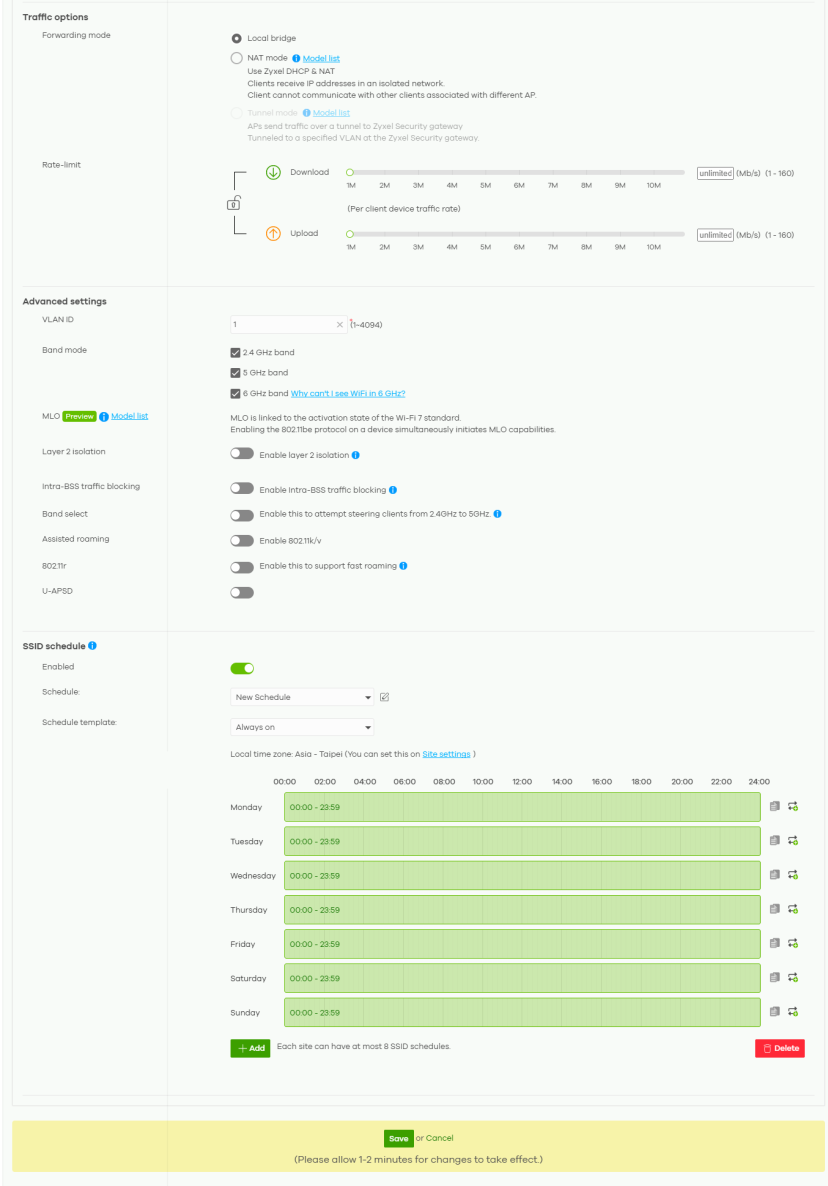 Schedule | Select a schedule to control when the SSID is enabled or disabled. You can click the edit icon to change the schedule name. |