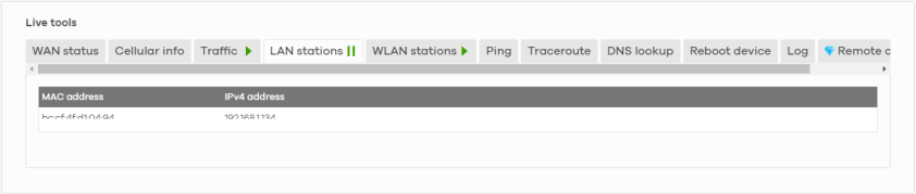 Cellular info | This shows the connection status of the cellular WAN interface. See Cellular Info for more information. |