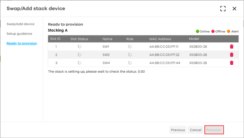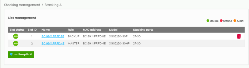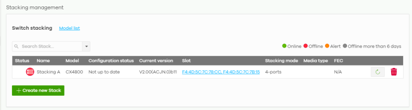 Switch / Port | This shows the Nebula Device name and port number. If the port is added to a trunk group, this also shows whether it is configured as a static member of the trunk group (Static) or configured to join the trunk group through LACP (LACP). If the port is connected to an uplink gateway, it shows Uplink. If the port is a stacking port, it shows the stacking name, slot ID and port number. Click details to display the port details screen. See Switch Details. |