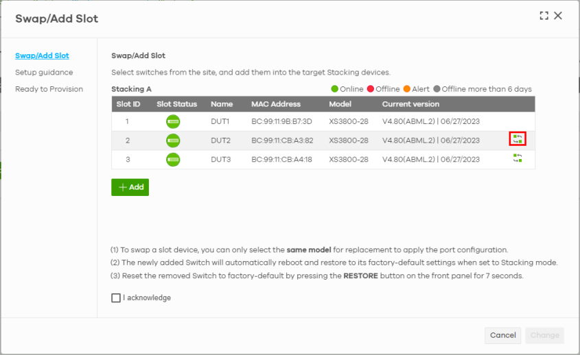 Role | Select the Nebula Devices you want to configure and click this button to change the IGMP role of the selected Nebula Devices. |