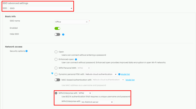 Configure WPA2 Enterprise with Nebula Cloud Authentication / RADIUS Server Authentication