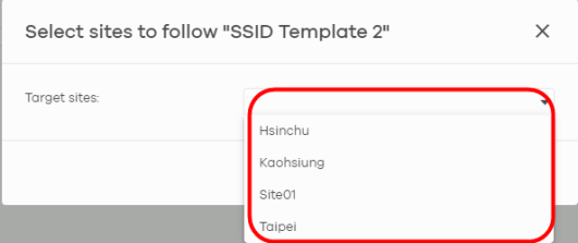 2 From the From source site drop-down list box, select the site you want to copy the SSIDs from.