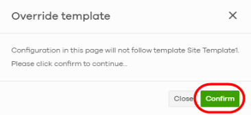 5 If you decide to go back to the original template settings, clear the Override site-wide configuration box on any page under Site-wide > Configuration. The following screen appears. Click Confirm to continue.