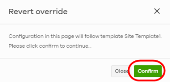 5 To go back to the original template settings, clear the Override switch configuration box on any page under Site-wide > Configuration > Access points / Switches. The following screen appears. Click Confirm to continue.
