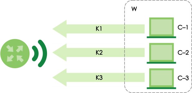 DPPSK (Dynamic Personal Pre-Shared Key) is a cloud authentication method offered in Nebula Professional Pack that enhances on the traditional Pre-Shared Key (PSK) method. DPPSK introduces dynamic key allocation to address the security weaknesses of static shared passwords. Unlike WPA2-PSK, where all users share the same password, DPPSK assigns a unique pre-shared key (K1, K2, K3) to each user or client device (C-1, C-2, C-3). The pre-shared key can be customized to expire in a particular timeframe. This tutorial shows you how to configure DPPSK for a guest WiFi network (W).