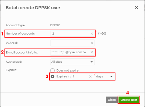 5 Enter a specific email address (2) to send a copy of each DPPSK and expiration date in a printable format.